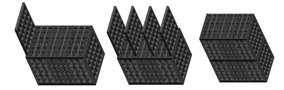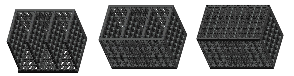 請將內隔板放在第五塊板到第六塊板中間并滑進去套住釘子,最蓋上頂板,有些地方要用小橡槌子輕輕敲一下,一個標準模塊即裝配完成。